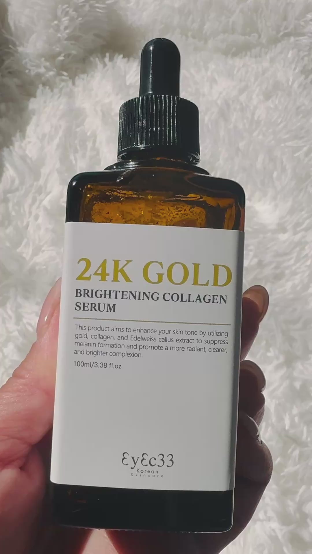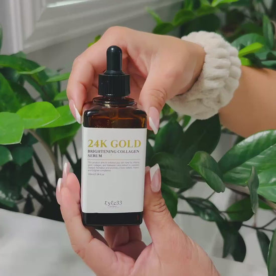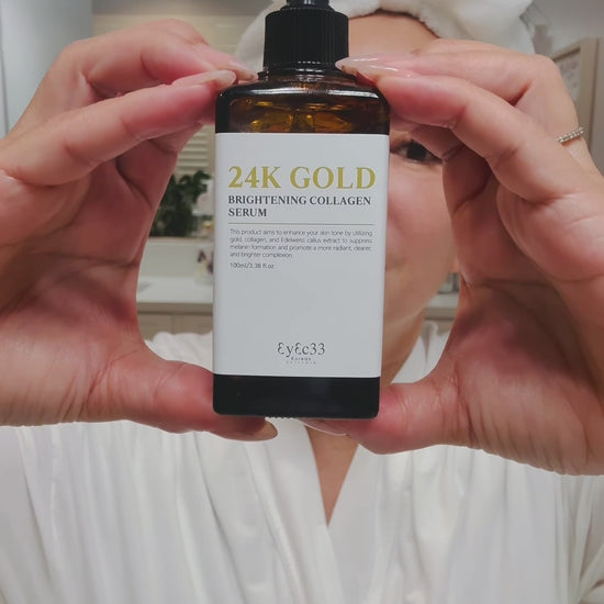 Transform your skincare routine with EyEc33’s 24K Gold Brightening Collagen Serum. This premium formula combines pure gold, collagen, and Edelweiss callus extract to promote a more even skin tone. By helping to inhibit excess melanin production, it supports a brighter, clearer complexion. Reveal your skin’s natural radiance and achieve a youthful luminosity with this effective, illuminating serum. Perfect for those seeking a balanced, vibrant skin tone.Suitable for day or night use as a serum.