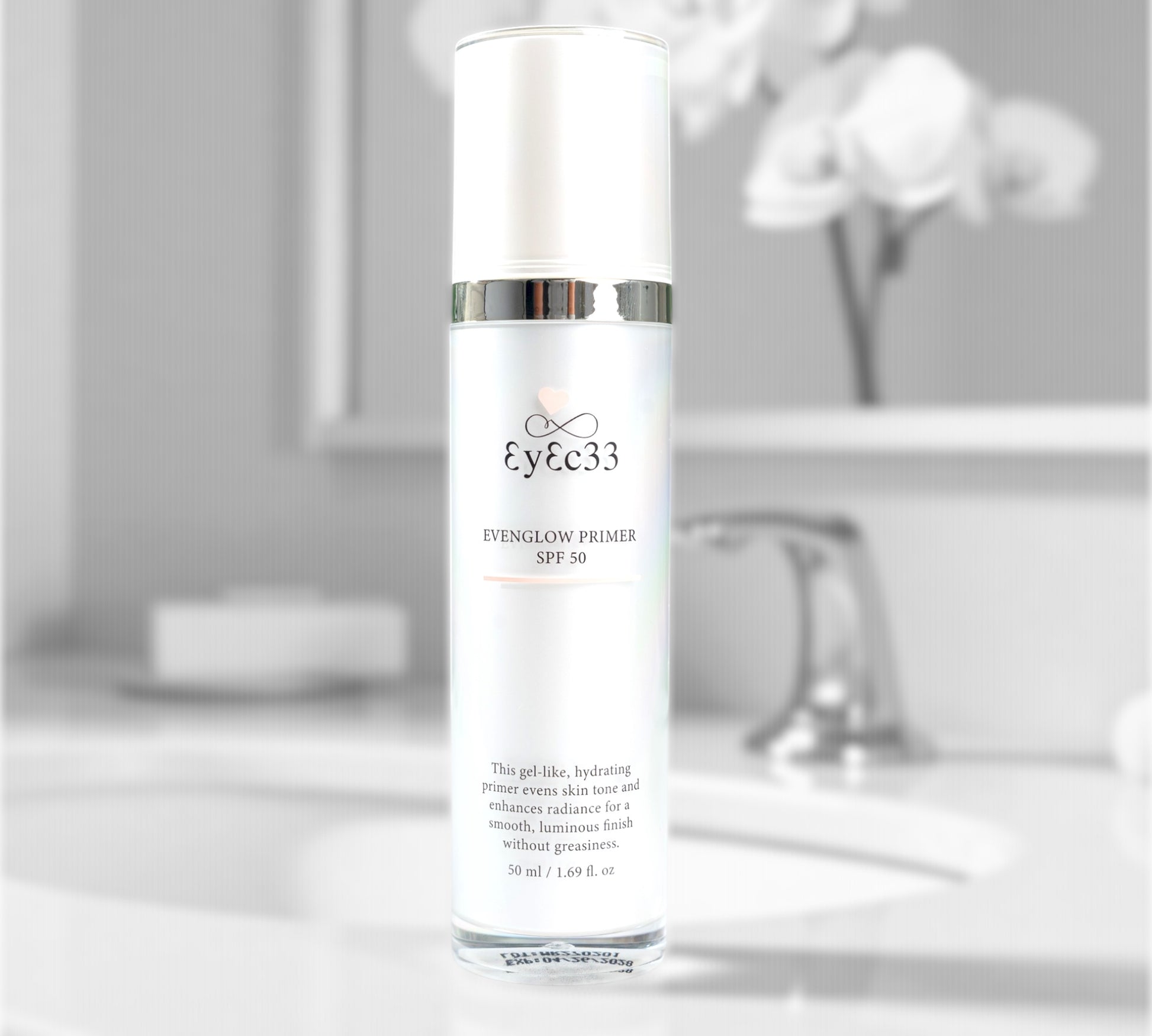 Elevate your skincare routine with EvenGlow Primer SPF 50—your ideal blend of color correction, brightening, and sun protection. This lightweight primer smooths and even tones, creating a flawless base for makeup or a radiant, no-makeup look. With broad-spectrum SPF 50, it shields skin from harmful UV rays, helping maintain a luminous, youthful glow all day. The perfect fusion of beauty and protection in one elegant formula.