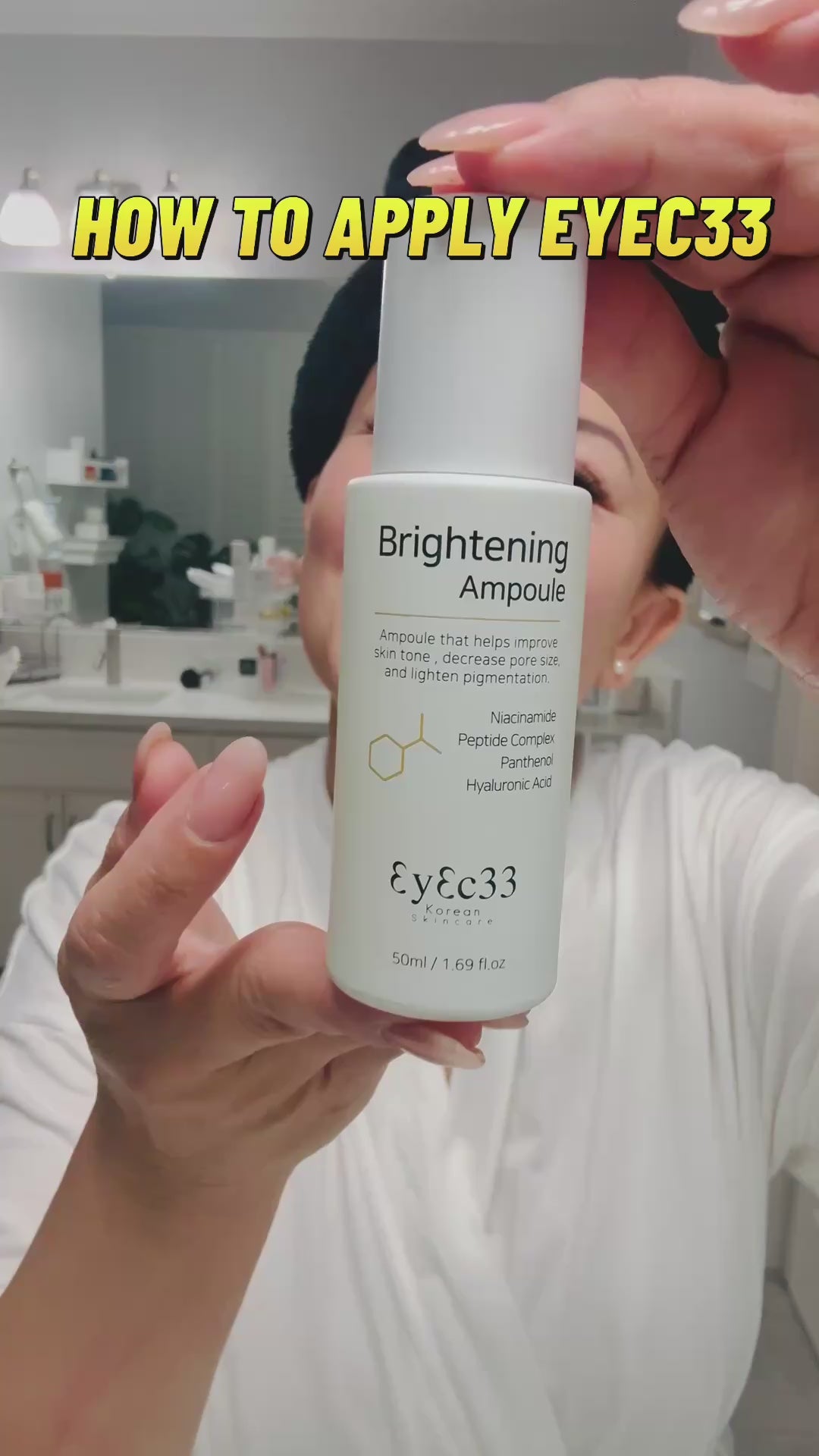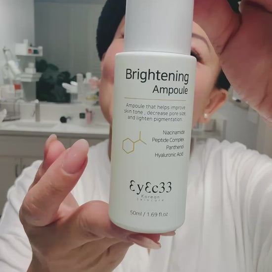 Experience radiant skin with EyEc33 Brightening Ampoule. This potent formula brightens and evens skin tone, minimizes pores, and reduces dark spots and hyperpigmentation for a luminous complexion. Packed with powerful brightening agents, it’s your key to a brighter, more flawless appearance. Suitable for day or night use as a serum.- Day or night use for brightening ampoule. Watch the video to apply.