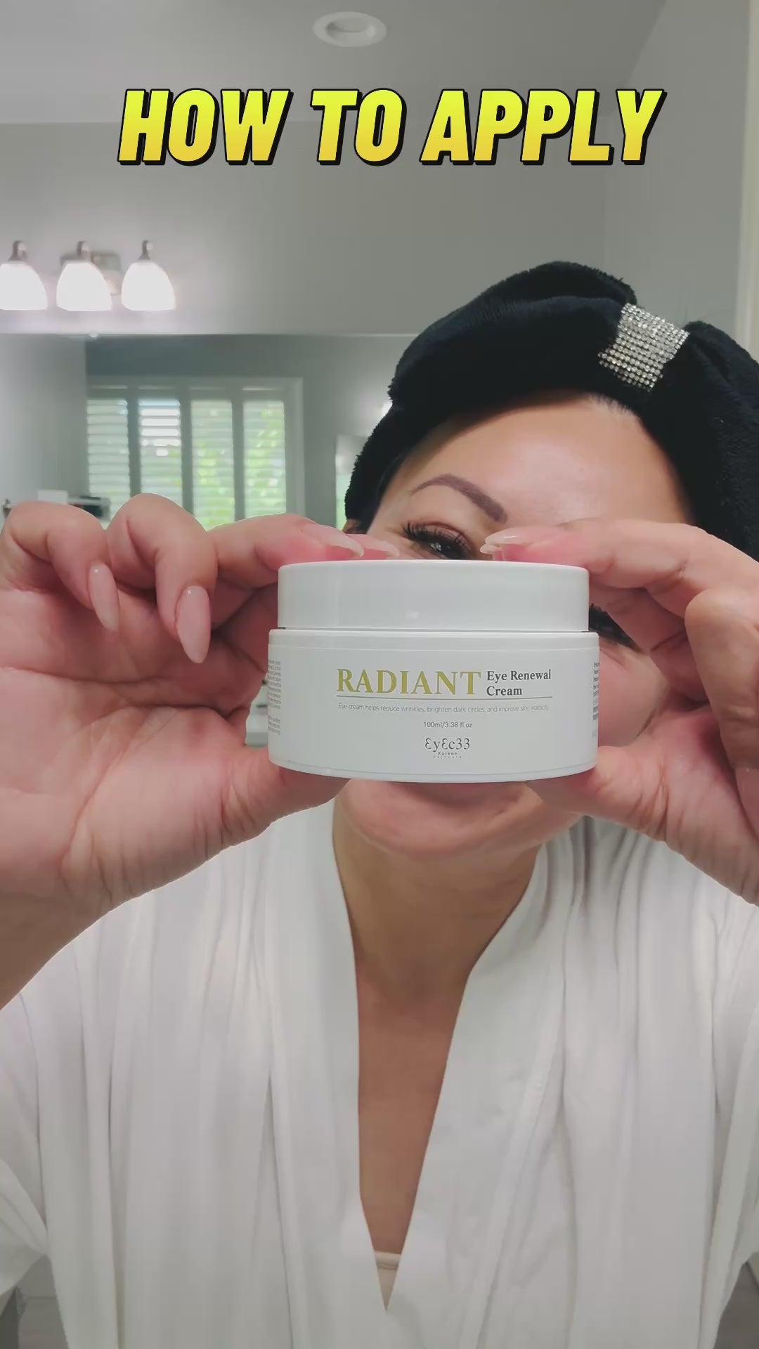 Use Radiant Eye Renewal Cream as a part of your morning and nighttime skin care routines. Take a pea-sized amount of cream, dab it evenly around the eyes, and tap gently into the skin. Be careful not to rub or drag the skin.
