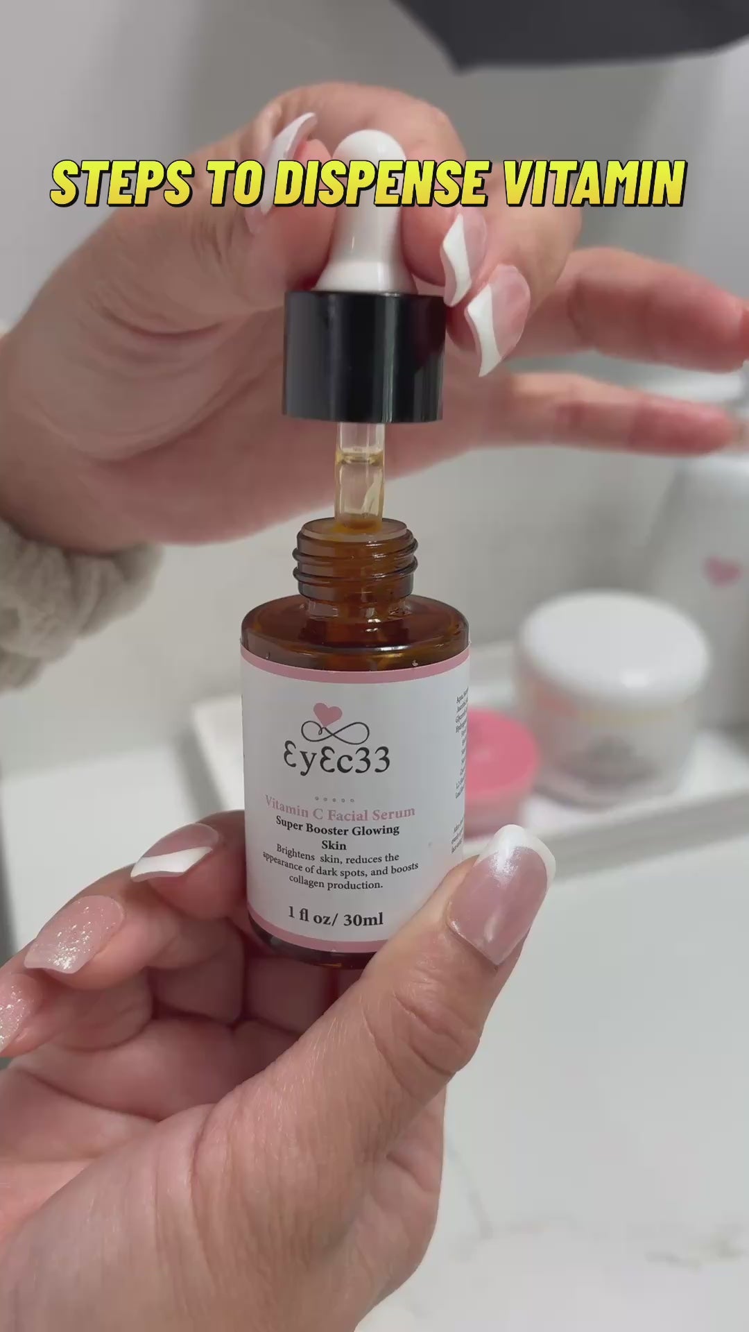 -Dispense 1–2 drops of the vitamin C serum into the palms.